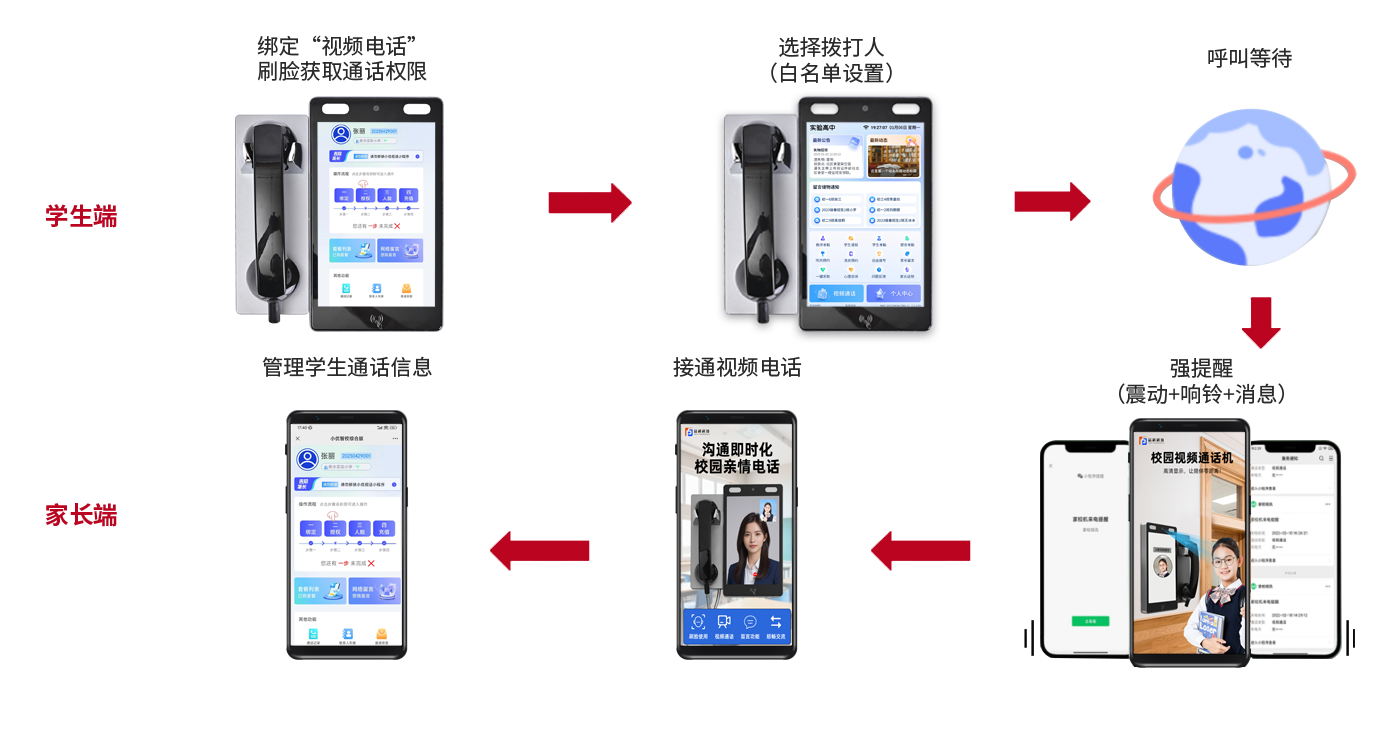 校園視頻電話機(微信視頻通話、手機號視頻通話、家校雙向留言、儲物信息通知、預約吹風洗衣)